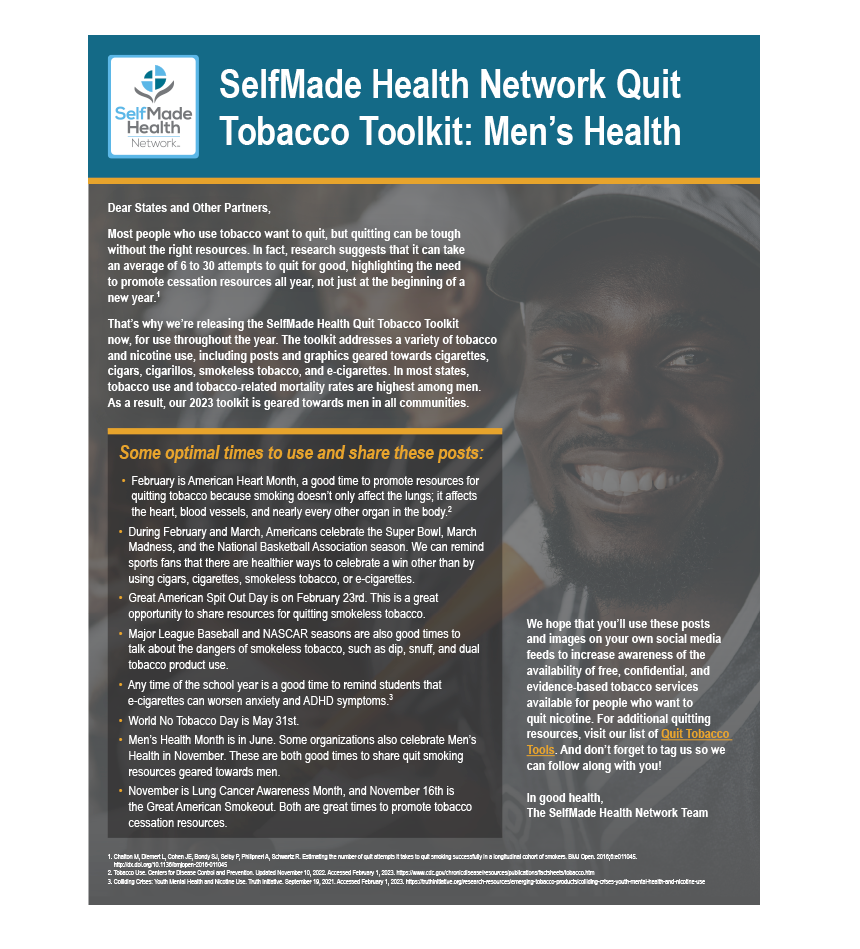 We are committed to building awareness surrounding prevention and screening for cancer and chronic illness shown to be prevalent in the populations we serve. These images created by SelfMade Health Network are designed to promote action, and are made available for Network members to share through social media and online tools.